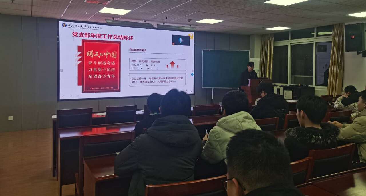 民主评议党员支部大会结束后,由张智恒同志开展党支部年度工作总结陈述,会上提出严格把关发展流程,确保党员队伍质量。在过去的一年,电信专业第一学生党支部新转正党员3人,新发展党员4人,入党积极分子32人。