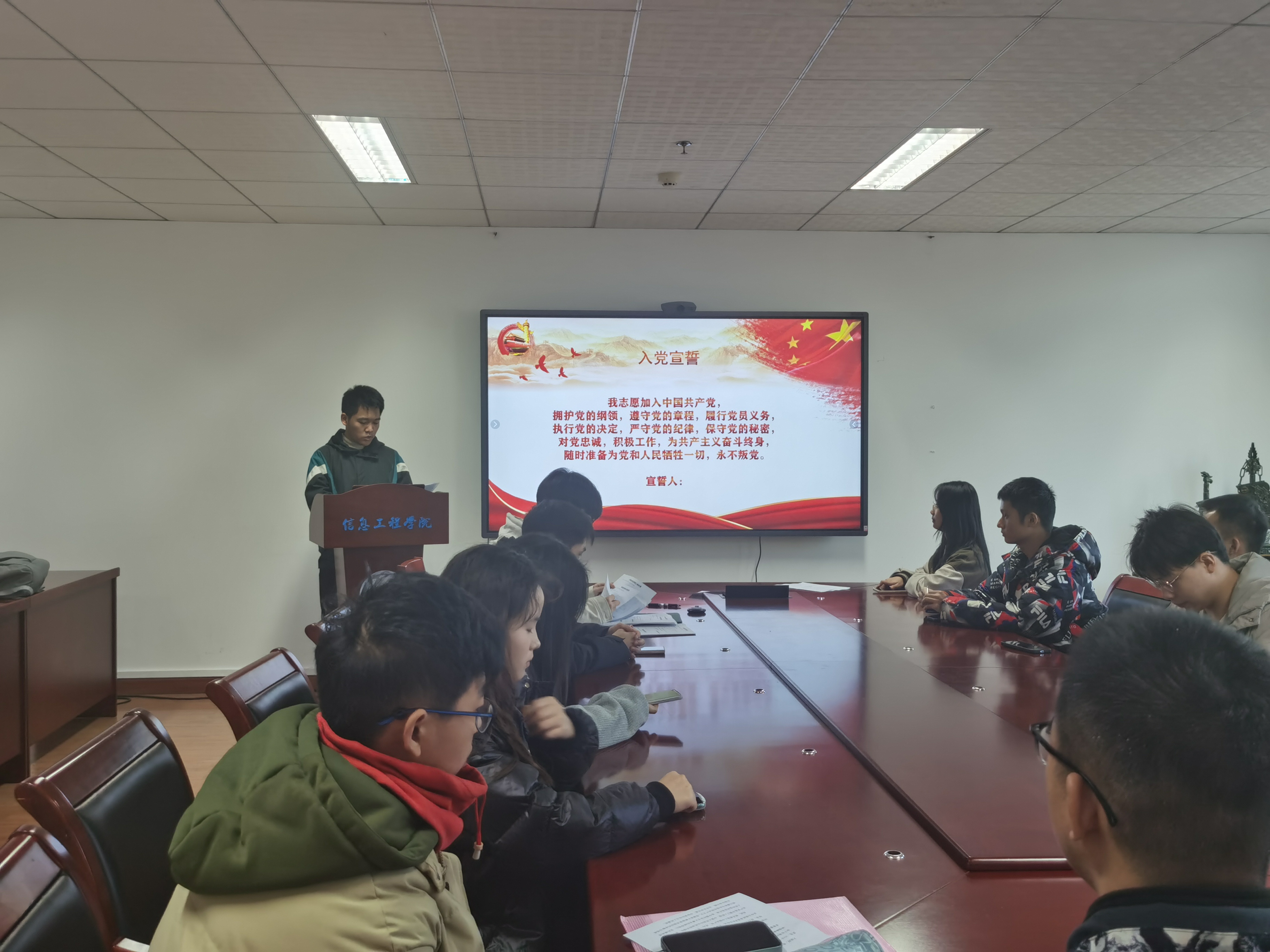 11月17日,通信专业第三学生党支部于鉴主会议室召开支部大会暨预备党员接收大会,讨论钱锦童等16名同志的入党问题。本次大会由副书记胡临风为同志主持,支部全体党员同志及16名发展对象参会。