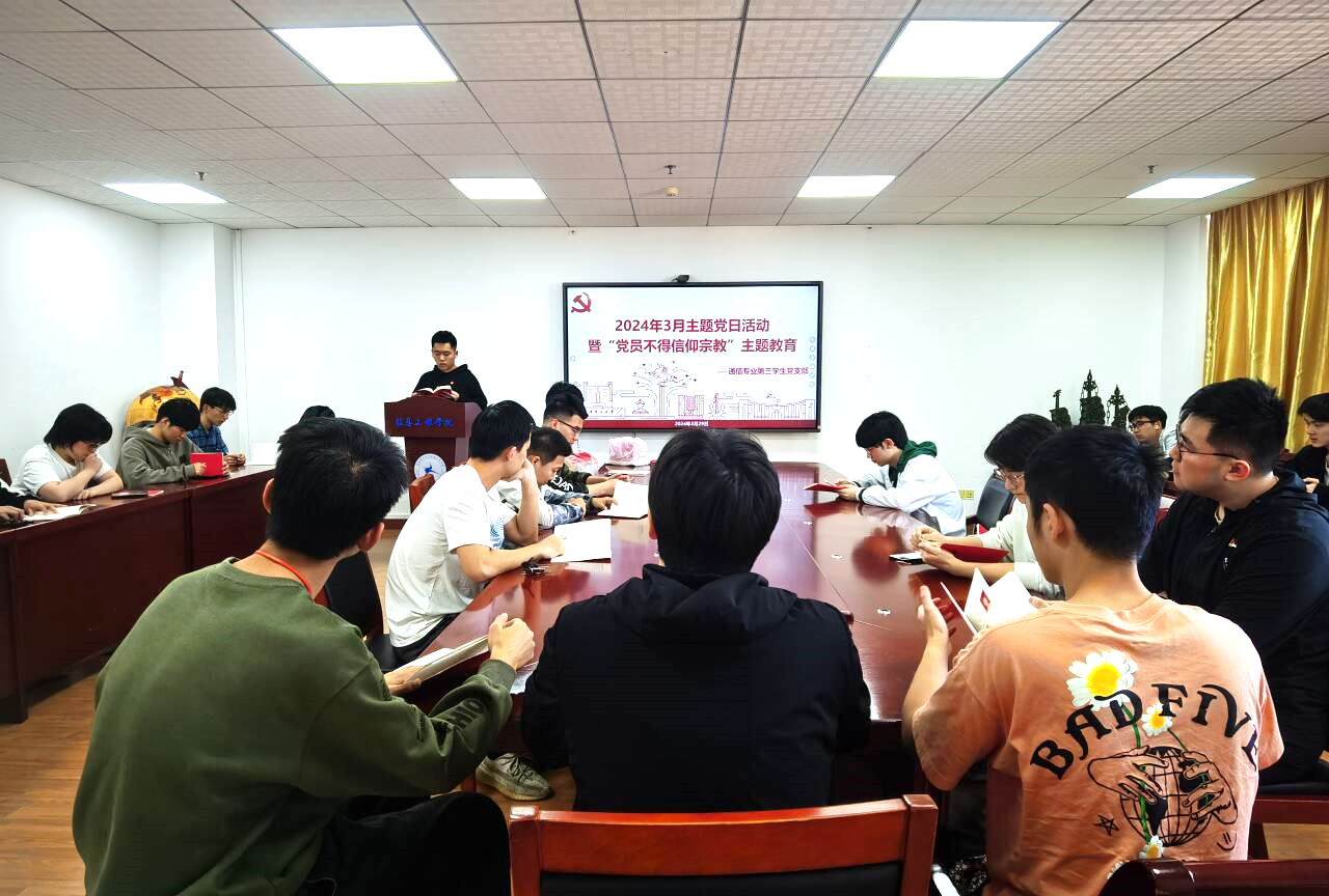 为深入学习贯彻习近平总书记在全国两会期间的重要讲话精神、政府工作报告,强化思想政治引领,激励挺膺担当,信息工程学院通信专业第三学生党支部在3月29日下午于爱特楼会议室开展3月主题党日活动,由副书记胡临风同志主持。