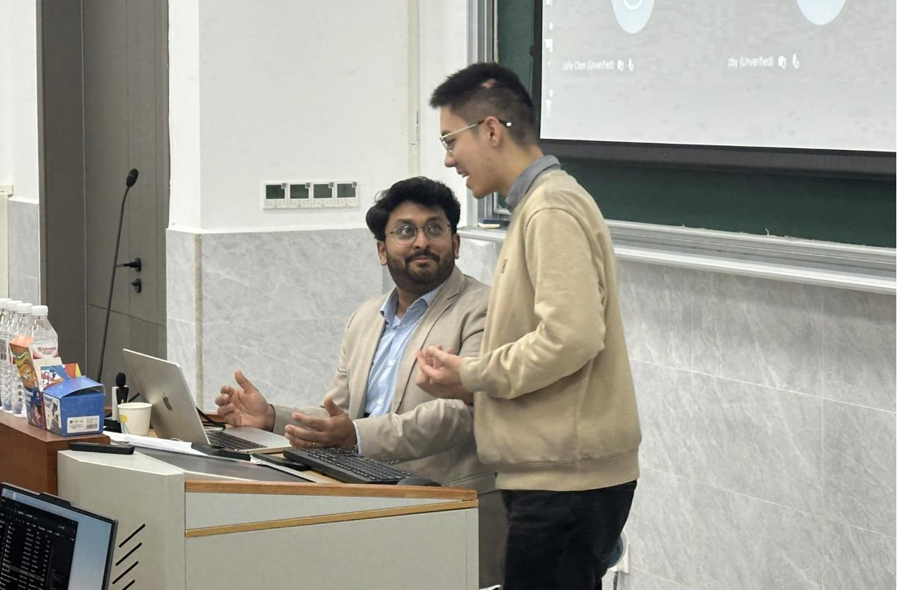 WU老师来访期间,法方选派的第二名外教Mano Mathew教授主讲的《Data Visualization》课程正在顺利进行,课堂互动频繁,学生参与度高。此前10月份,由法方外教Khodor Hammoud老师执教的《Devops and MLOps》课程已圆满完成,学生们普遍反映课程内容前沿、实践性强,对提升工程实践与机器学习运维能力帮助显著。