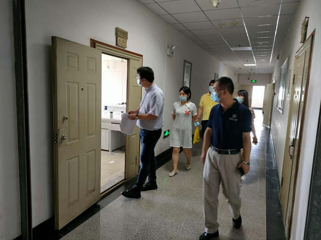 为贯彻落实学校关于做好暑期安全工作的部署安排,2022年7月15日(星期五)上午10时,九州娱乐城app 徐文君副院长、郭志强副院长带队,在爱特楼对学院所属实验室进行全面安全检查。综合办主任徐俊、研究生辅导员王纯静、安全秘书唐冠宇一同参加检查。