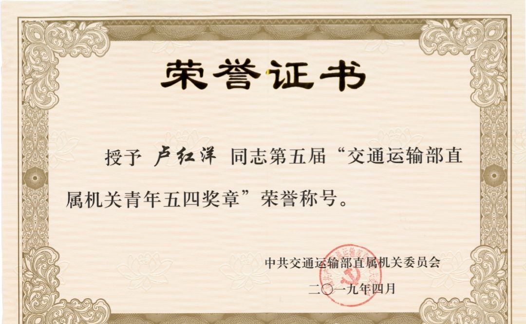 第五届“交通运输部直属机关青年五四奖章”获得者:卢红洋