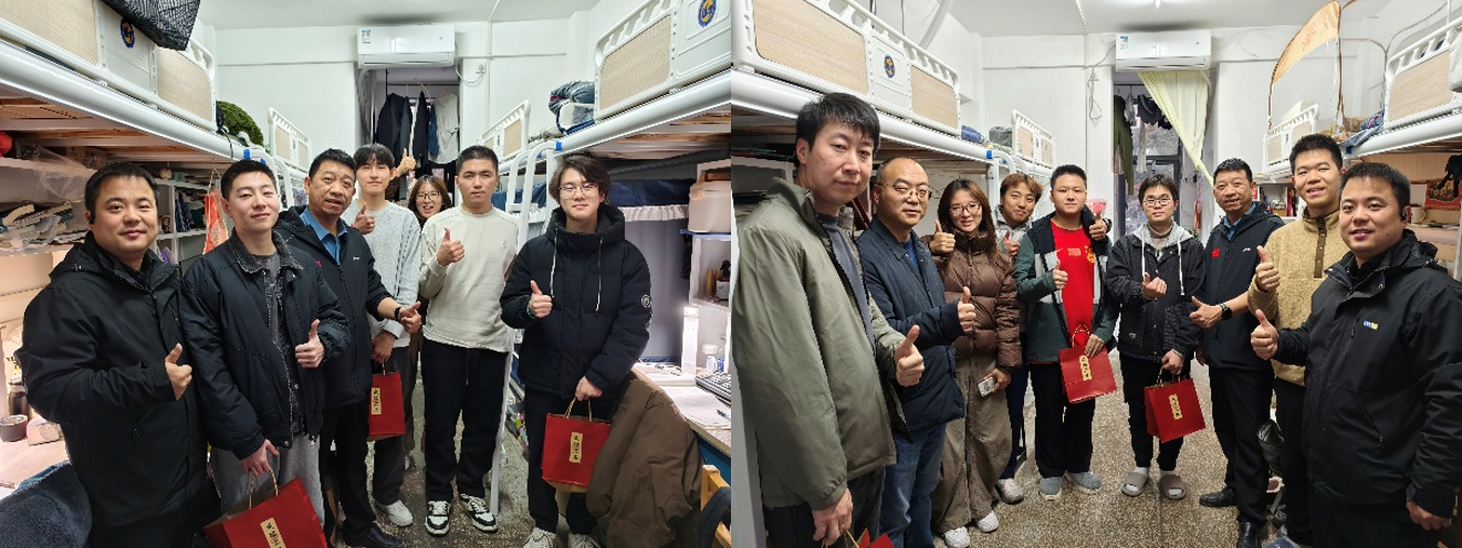 12月10日,随着全国硕士研究生招生考试进入最后冲刺阶段,为了鼓舞考研学子的士气,缓解备考压力,武汉理工大学信息工程学院党委书记张虎、党委副书记刘浩杰、副处级组织员苏德亮老师以及2022级辅导员老师们深入学生社区,走进考研学子宿舍,为考研学子送上“考研加油包”,祝福各位考研同学得偿所愿,顺利上岸。