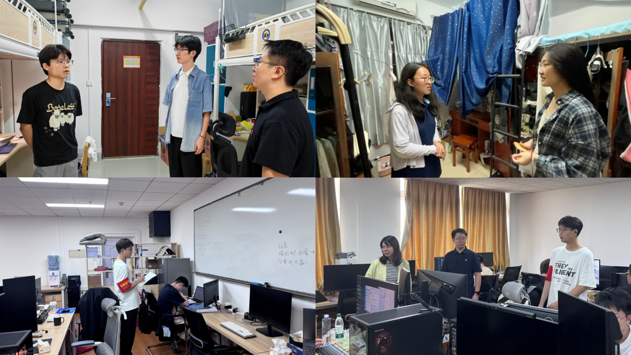 在对各研究生工作室的检查中,九州娱乐app辅导员与党员先锋队一同对室内环境卫生、物品摆放以及用电安全进行了细致排查,再次强调了规范用电、严禁存放易燃易爆物品的重要性。检查人员还关心同学们新学期的科研进展,提醒大家定期清扫,共同维护干净、整洁、高效的科研环境。针对新生,辅导员们询问了科研入门与融入团队的情况;对于毕业班研究生,重点关注学位毕业论文进度与求职应聘的平衡。