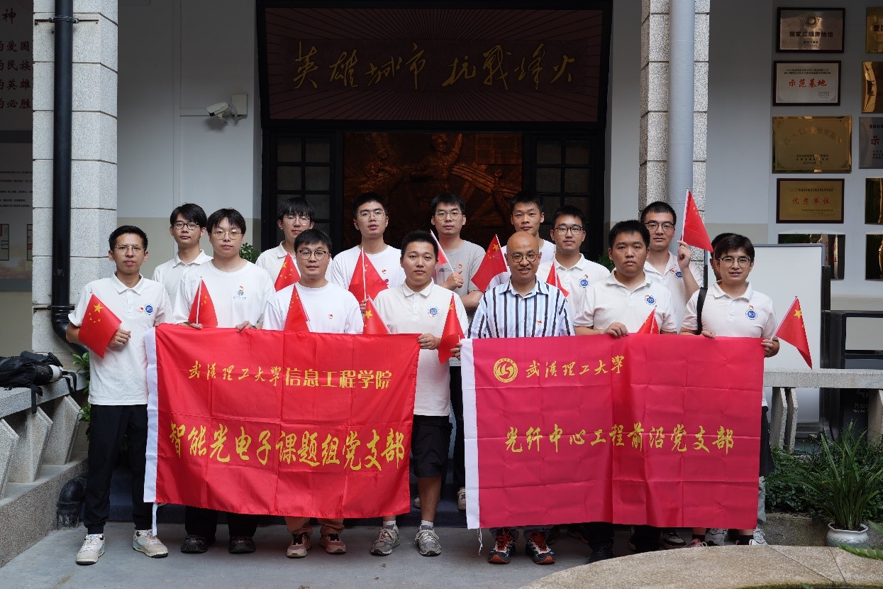 为纪念中国人民抗日战争暨世界反法西斯战争胜利80周年,深化党史学习教育,激励党员传承红色基因,2025年10月7日,智能光电子课题组党支部与光纤中心工程前沿党支部结对前往八路军武汉办事处旧址纪念馆参观,开展“重温抗战烽火岁月 砥砺科技报国初心”主题研学活动。通过沉浸式参观与专题学习,支部党员深刻感悟中国共产党在抗战中的中流砥柱作用,进一步坚定了科技报国的使命担当。