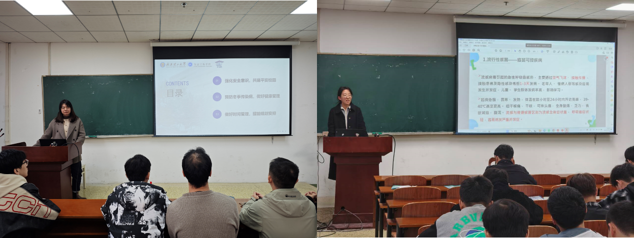 在卫生安全教育环节,辅导员结合秋冬季传染病防控特点,提醒同学们注意宿舍与工作室的日常通风和清洁消毒,养成个人良好卫生习惯,共同维护整洁健康的学习生活环境。同时,结合近期高校安全事故案例,辅导员再次强调宿舍管理规定,重点解读了电器使用规范、外出请假流程与节假日出行安全须知,引导学生自觉遵守校纪校规,防范各类安全风险。