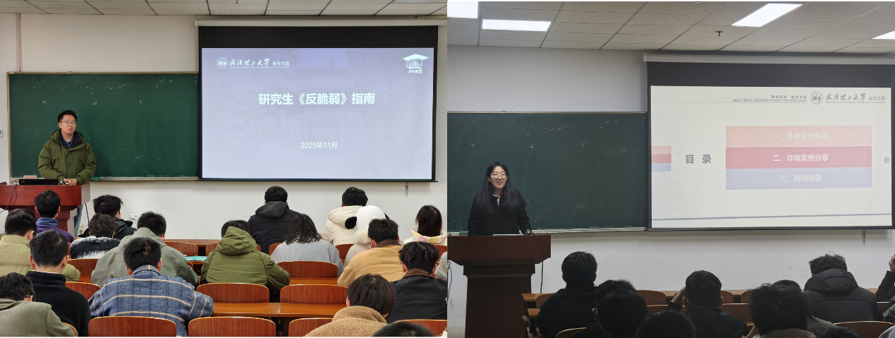 为持续深化研究生安全教育与心理健康工作,引导学生增强风险防范意识与逆境应对能力,学院以“筑牢安全防线,提升心理韧性”为主题举办本月研学讲堂。活动面向全体研究生,聚焦卫生安全、校纪校规、电信防诈与心理成长四大模块,系统开展专题教育。
