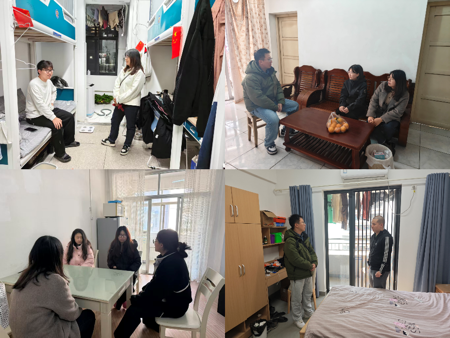 同时,辅导员还深入校外住宿学生租住地,关心学生生活情况,细致了解居住条件与周边环境,提醒学生注意用电、防火与人身财产安全,增强自我保护意识;并走访军山校区住宿学生,询问大家的生活适应与学习情况,认真听取学生意见建议,及时回应关切,叮嘱同学们遇到困难随时与辅导员联系,共同营造安心、温暖的校园生活环境。